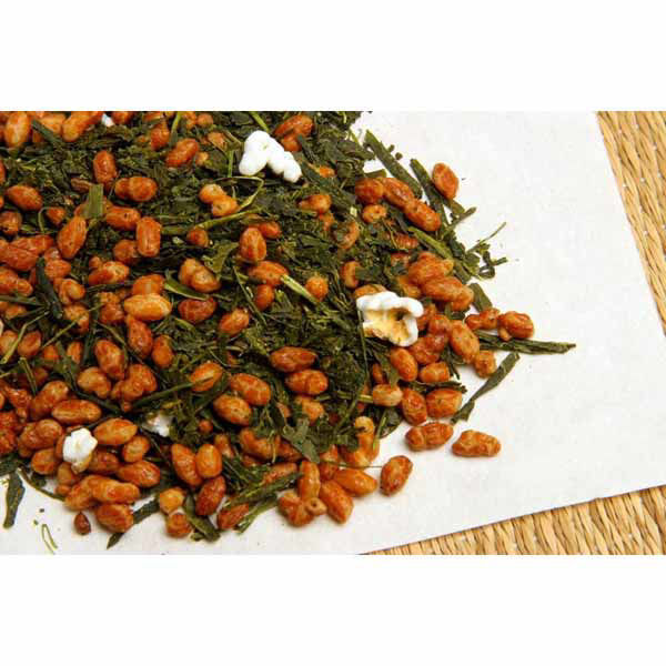 Genmaicha ist eine Mischung aus grünem Tee und geröstetem braunem Reis (genmai). Der Genmai gibt dem Tee einen nussigen Geschmack und reduziert den Koffeingehalt des Tees um die Hälfte.